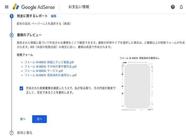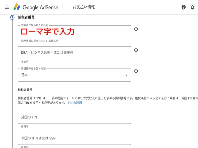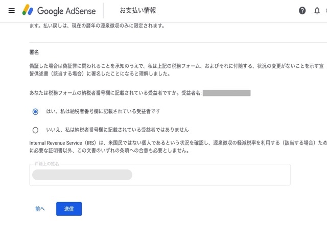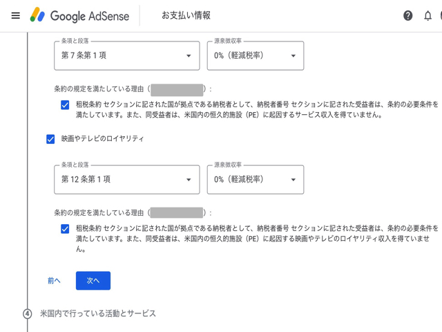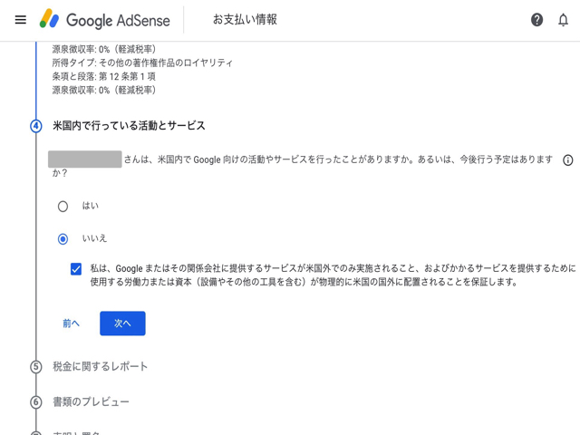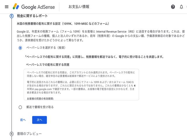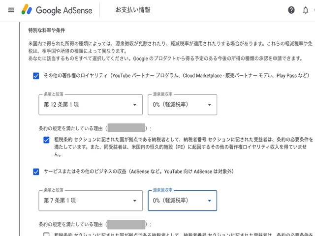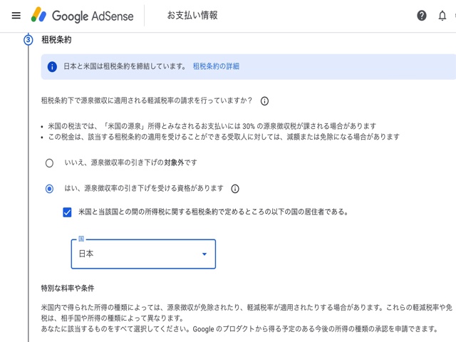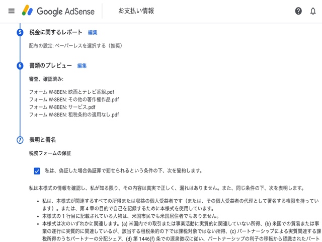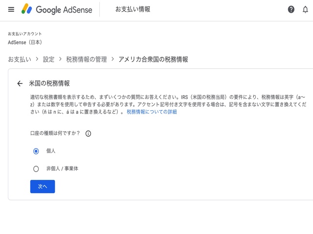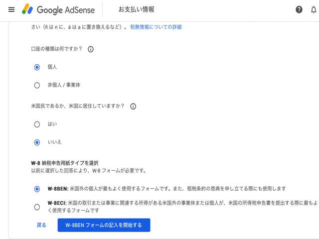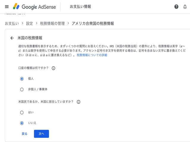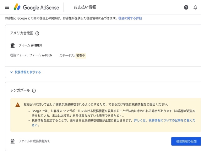Google Adsense には以下の2つの税務情報設定があります。