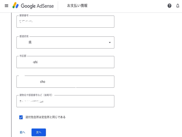 こちらは住所を入力します