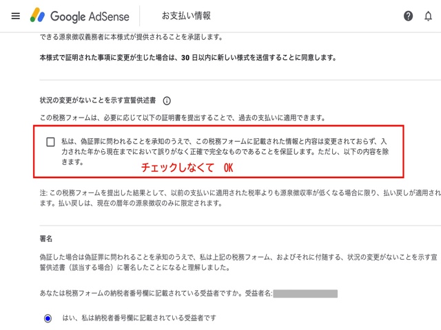 下記のページのチェック欄には「チェックしなくてOK」