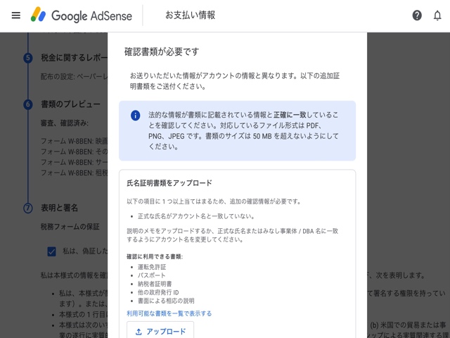 本来であればこれまでの手順で無事に米国税務情報の登録手続きは完了なのですが、稀に「本人確認が必要」な場合があります。