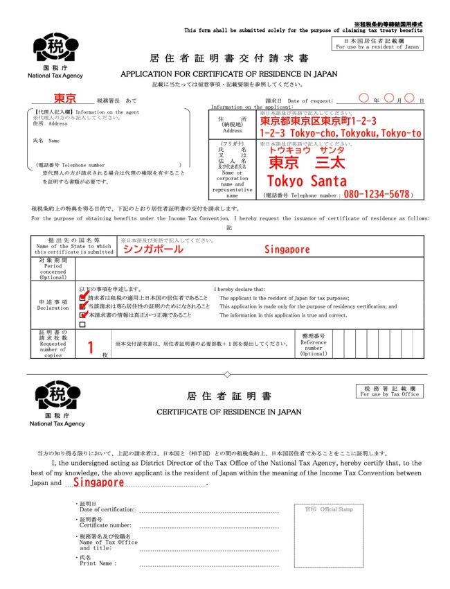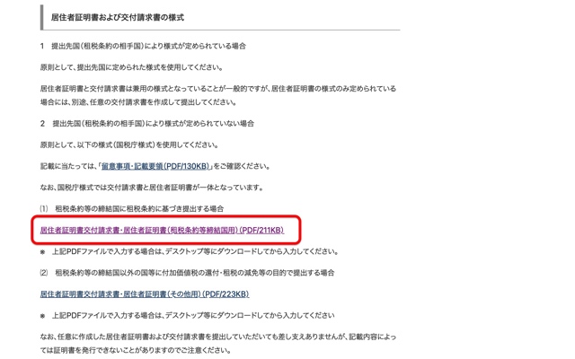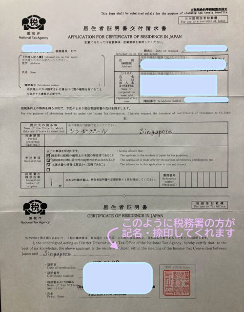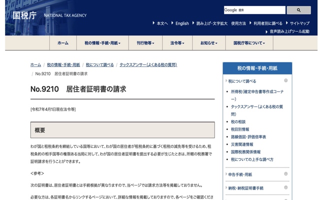 手順を説明する前に、シンガポール税務情報の場合は添付必須資料として「居住者証明書」を用意する必要があります