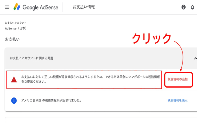 「税務情報の追加」をクリックしましょう