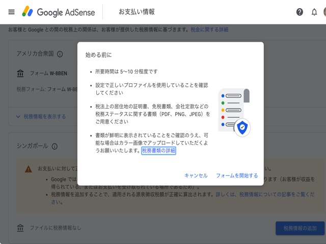 前回に引き続き「グーグル・アドセンス」の税務情報登録手順についての記事となります。