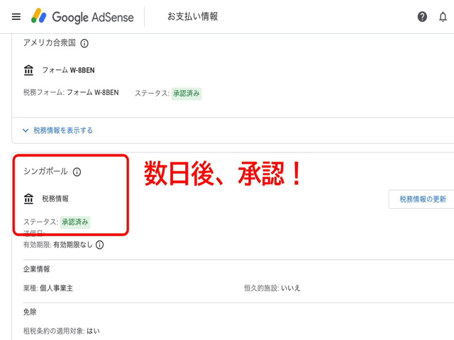 数日後、このように無事「承認」されていれOKです!